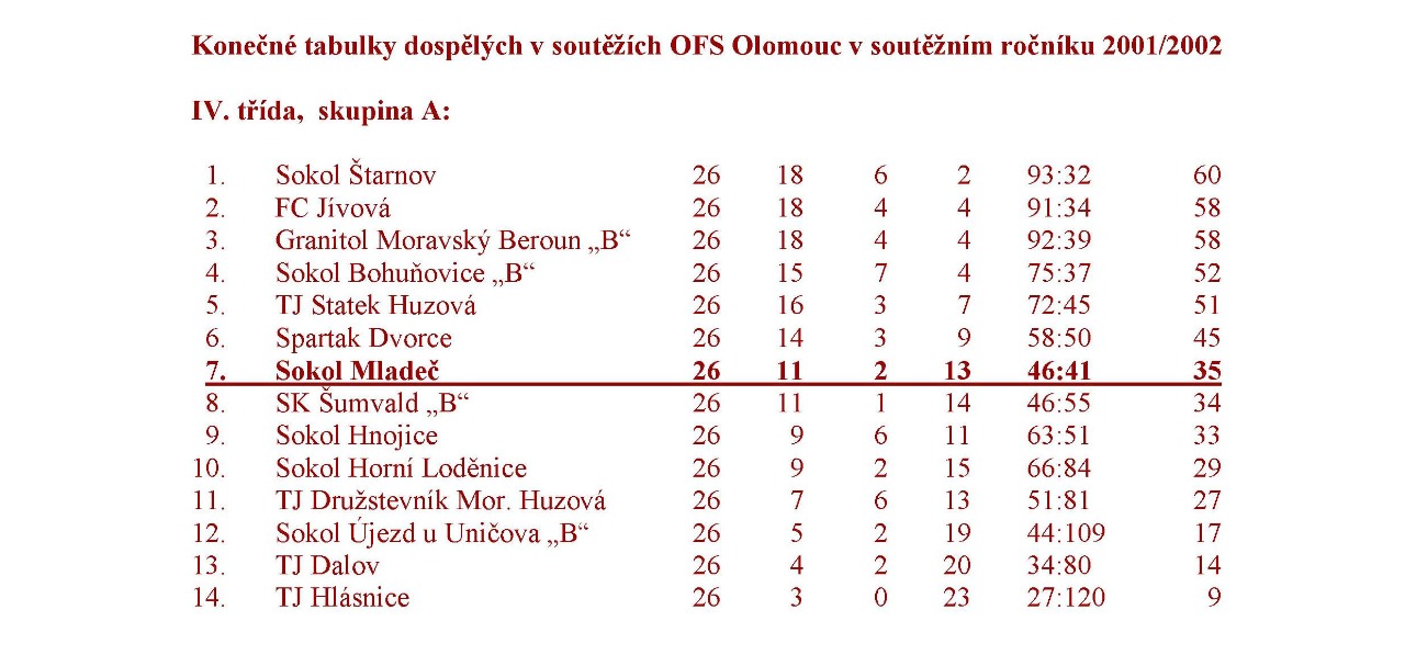 VÍTEJTE NA WEBOVÝCH STRÁNKÁCH FOTBALOVÉHO ODDÍLU TJ SOKOL MLADEČ